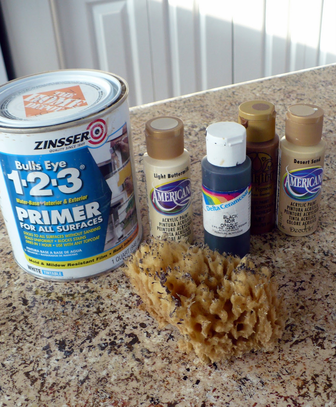 One of the major advantages of concrete over natural stones like granite is that it is much less expensive and can be produced easily. This amazing paint can transform old, ugly and dated countertops into expensive looking granite in. This photo shows how my kitchen looked as i started painting the cabinets white and countertops to look like carrara marble. All you need is one of the awesome granite countertop painting kits on the market. I painted my dated granite countertop in my powder room and i achieved a convincing marble finish!